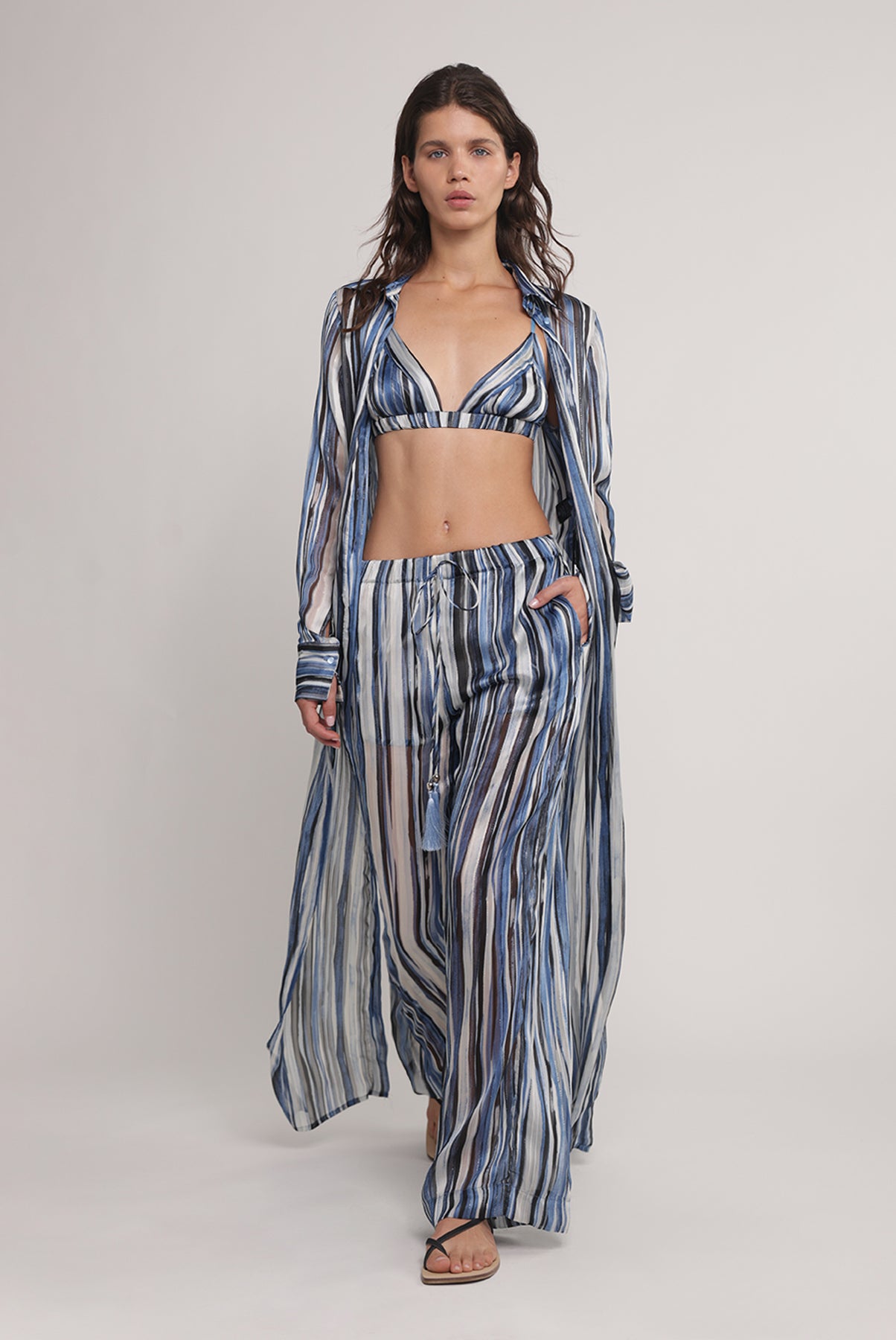 - Stripe print chiffon bra.