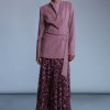 DescriptionDouble face diagonal viscose blend tailored jacket with shoulder pads, pockets, and unique golden buttons.