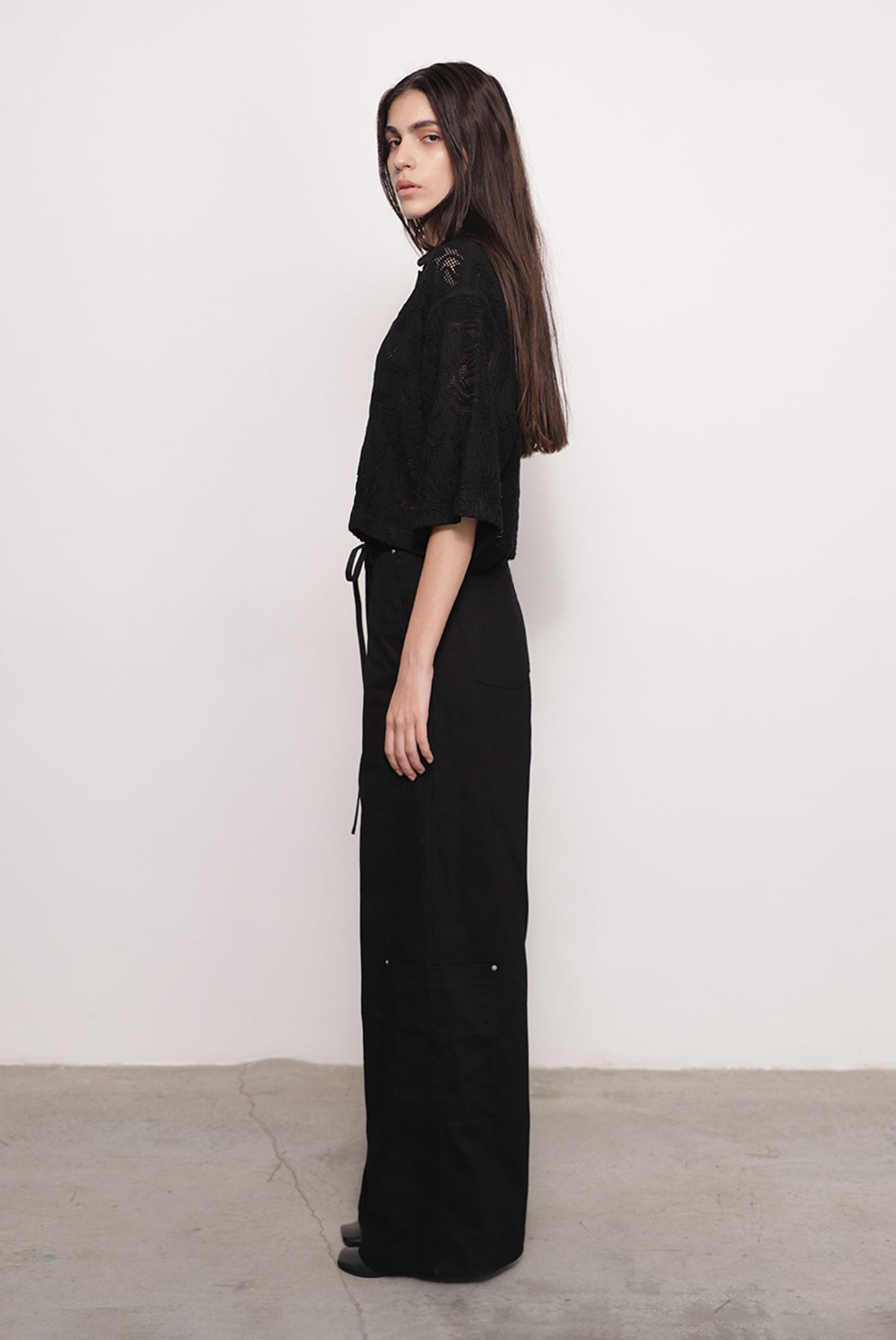 - Casual brushed denim with ribbon pants by Sabina Musayev.
