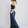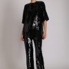 Rayon with lurex blend wide leg featuring side pockets, and button fastening on the front.