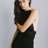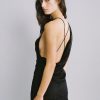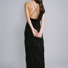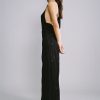Embroidered chiffon maxi dress featuring an asymmetrical round neck, drop sleeve with gathered detail, open back, and invisible zipper at the side.